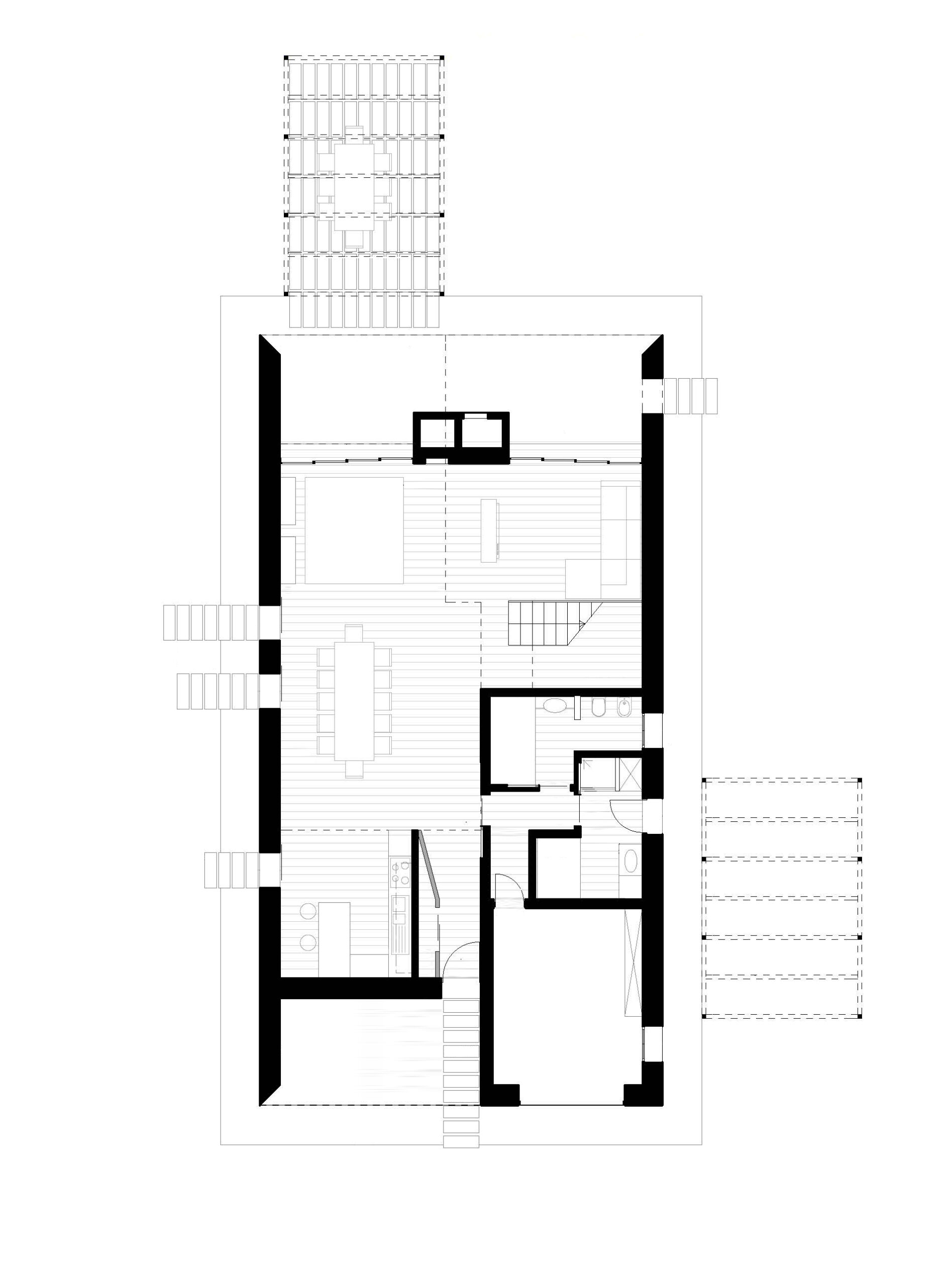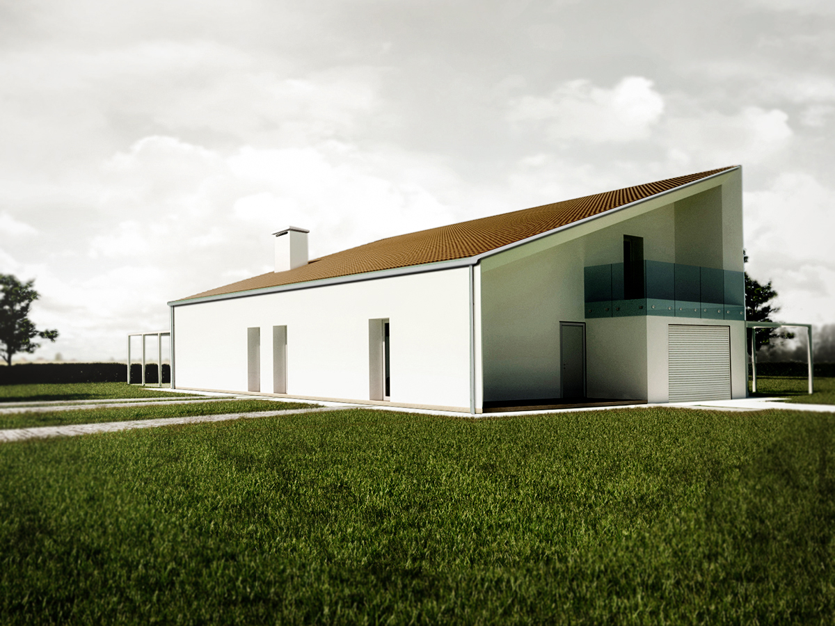 L’intervento previsto si caratterizza per la semplicità volumetrica: una casa con una copertura ad unica falda che segue la disposizione degli ambienti interni. L’idea sviluppata è di pensare alla residenza senza trascurare il paesaggio, ovvero l’idea di saltare continuamente di scala dal generale al particolare e viceversa.