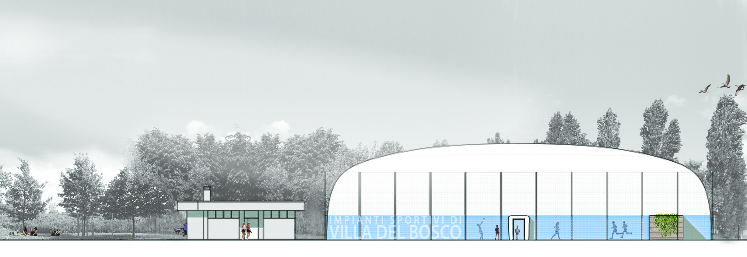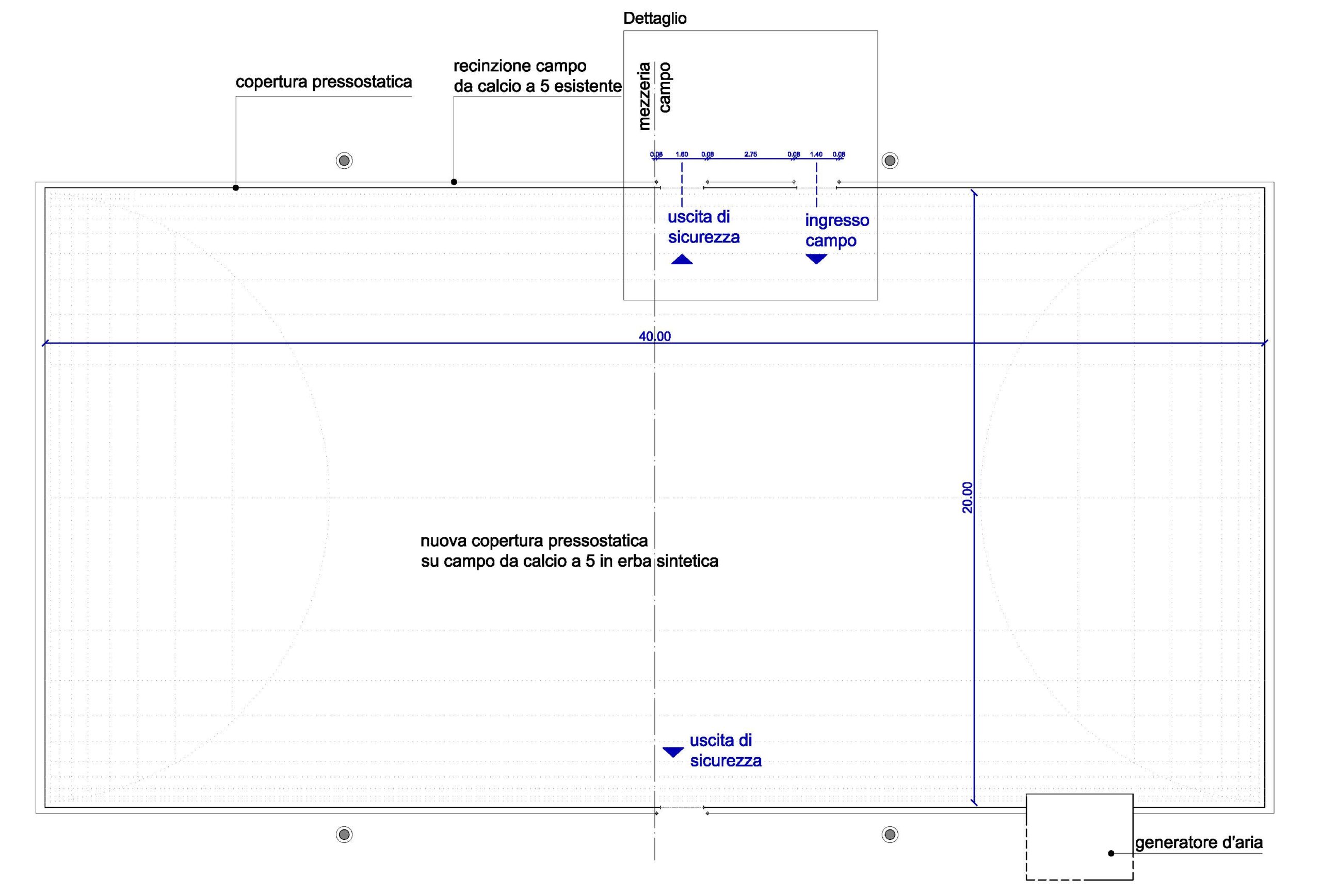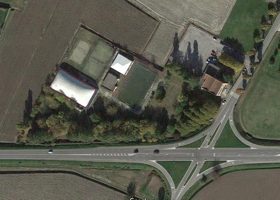 La struttura è stata realizzata presso l'area sportiva nel comune di Correzzola (PD) in località Villa del Bosco a servizio di un campo da gioco esistente. La copertura pressostatica è stata realizzata con telo in tramatura di PES spalmato PVC. La struttura è stata ancorata ad una fondazione a trave continua mediante ganci in acciaio annegati nel calcestruzzo e fissati tramite ancoraggi chimici. Presenta due tunnel di ingresso con bussola di compensazione d'aria.
